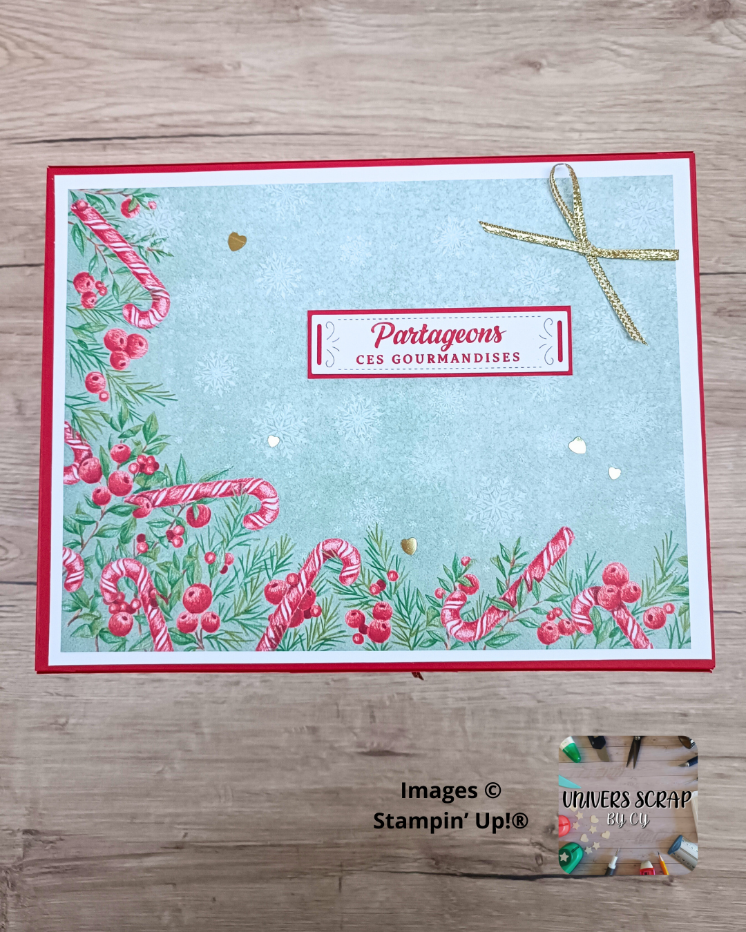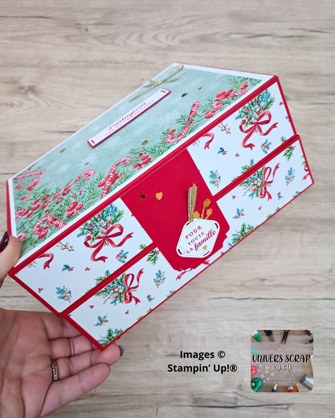 Je suis ravie de vous présenter la toute nouvelle version de la Boîte Gourmande, réalisée en live hier soir. Cette fois-ci, j’ai opté pour une base en Calicot Coquelicot, qui apporte une belle touche festive et chaleureuse. Avec la collection Noël Sentimental, cette boîte est devenue un véritable écrin pour les fêtes de fin d’année, idéale pour offrir des douceurs ou embellir votre décoration de Noël.