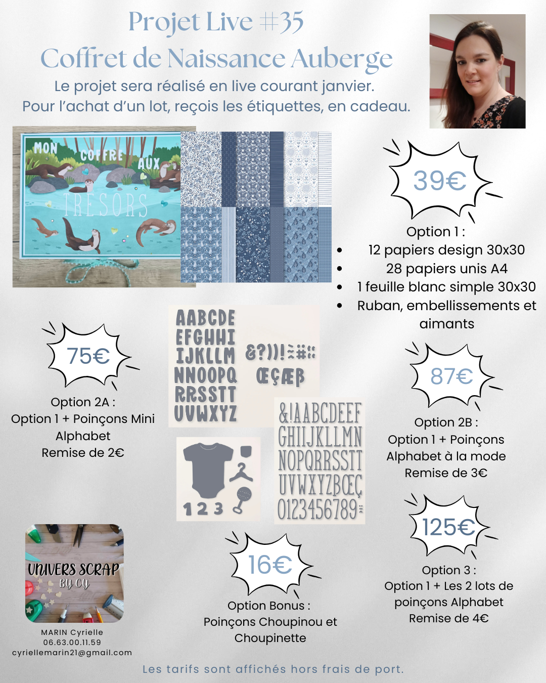 Les inscriptions sont désormais ouvertes pour réserver votre lot et réaliser ce projet avec moi en live les mercredis soirs de janvier ! Vous avez le choix entre plusieurs collections de papiers, et il est également possible d’opter pour une autre collection qui correspondrait mieux à vos goûts.