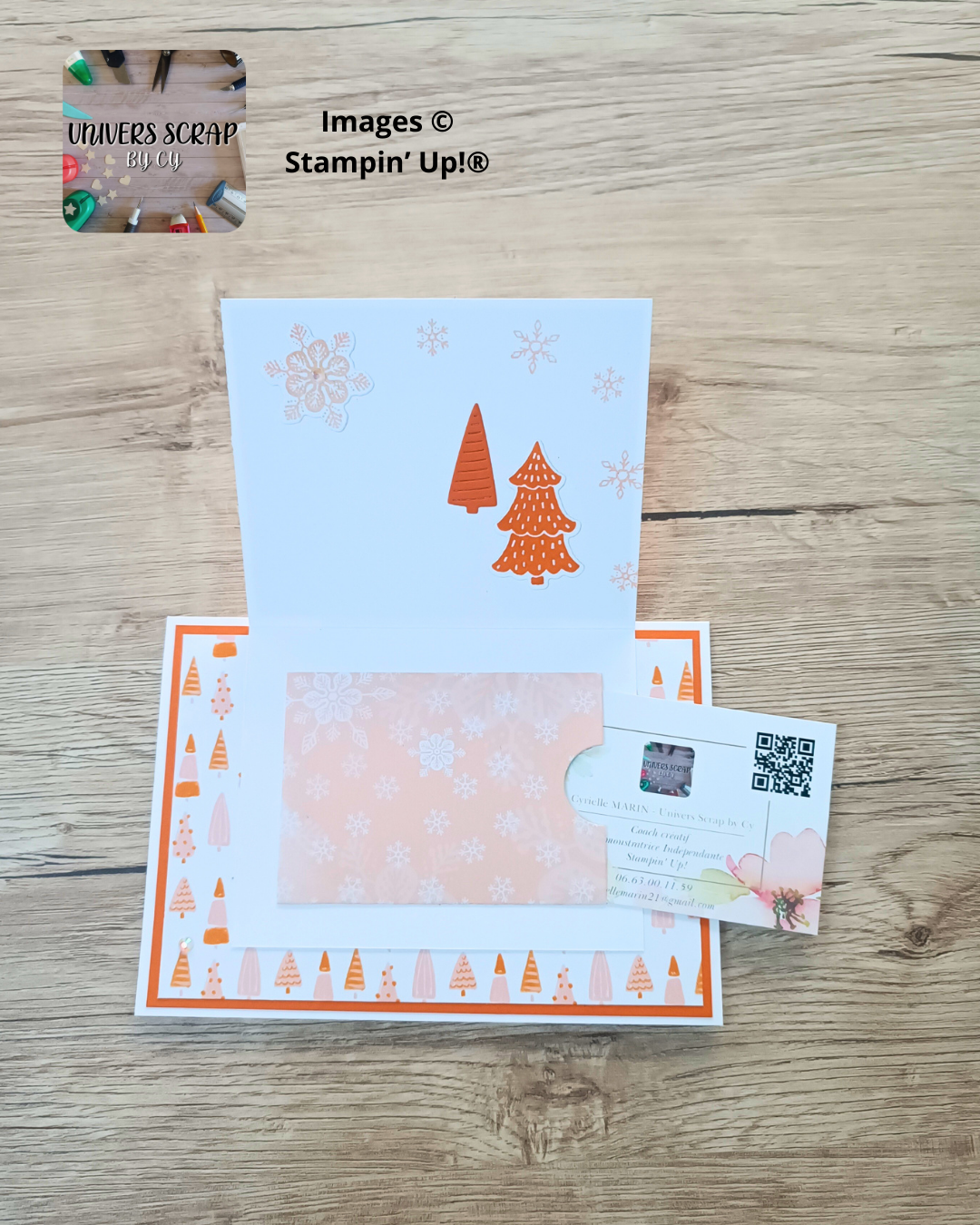 - Une découpe pour la pochette (pour insérer la carte cadeau)