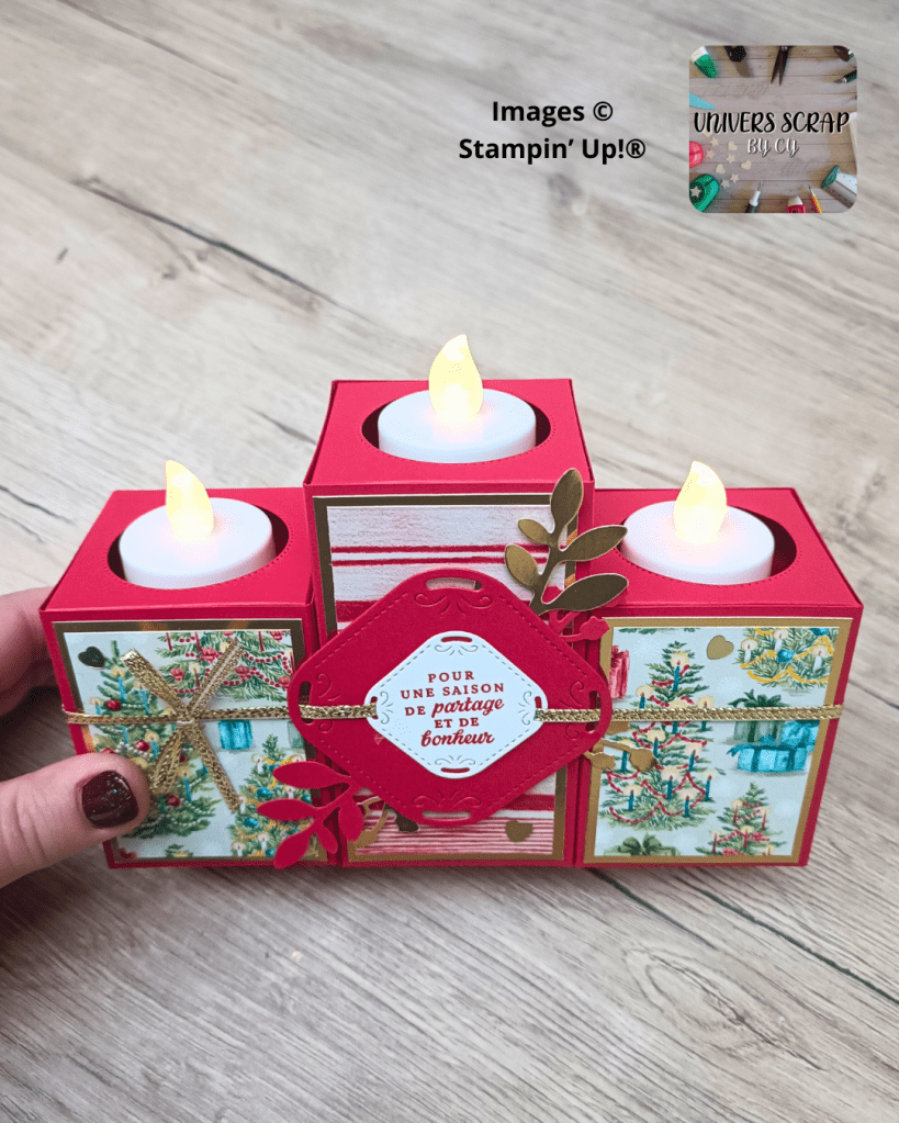 Je suis tellement excitée de vous parler du live de mercredi soir, où nous avons créé ensemble un magnifique triple bougeoir ! C’était l’occasion rêvée de mettre en avant la superbe collection Noël Sentimental de Stampin’ Up! et de vous montrer comment transformer des éléments simples en de magnifiques décorations pour vos tables de fêtes.