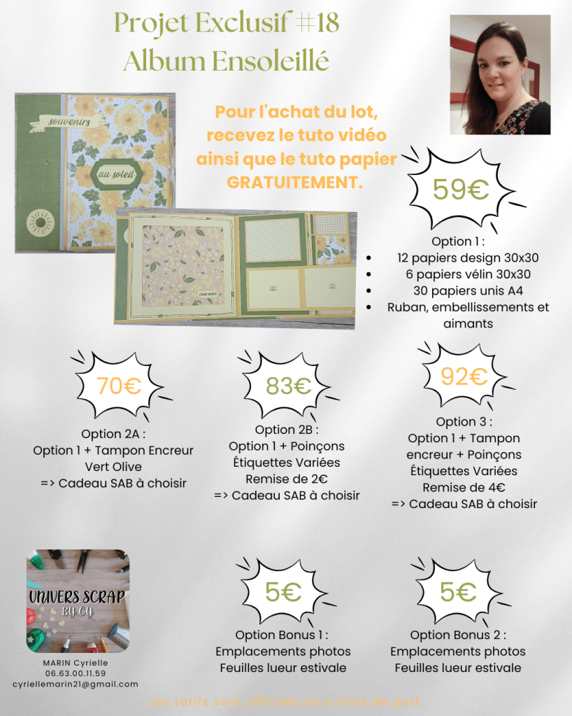 Pour que vous puissiez profiter pleinement de ce projet, une première commande groupée aura lieu le 7 janvier 2025. C’est l’occasion idéale pour vous procurer la collection Fleurs ensoleillées et tout le matériel nécessaire à la réalisation de l’album.