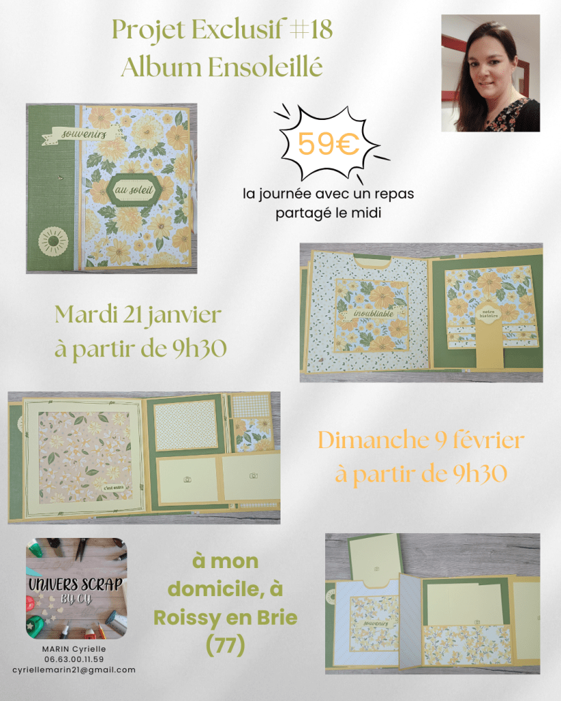 J’ai hâte de vous retrouver, en atelier ou en ligne, pour partager ensemble ce beau moment de créativité. L’album ensoleillé est bien plus qu’un projet, c’est une invitation à mettre en lumière vos plus beaux souvenirs.