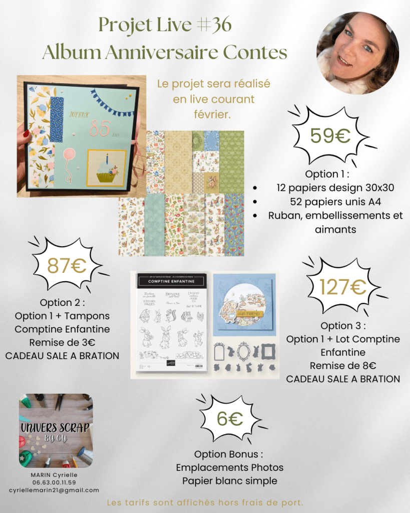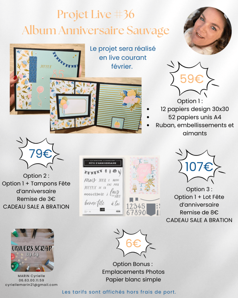 Si tu aimes le scrapbooking et les projets créatifs, prépare-toi à être inspiré(e) tout au long du mois de février ! À travers une série de lives sur Facebook, je te propose de réaliser un magnifique album autour de la collection Anniversaire aux fleurs sauvages de Stampin’ Up!.