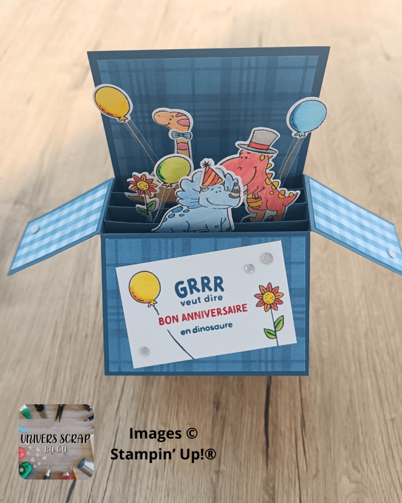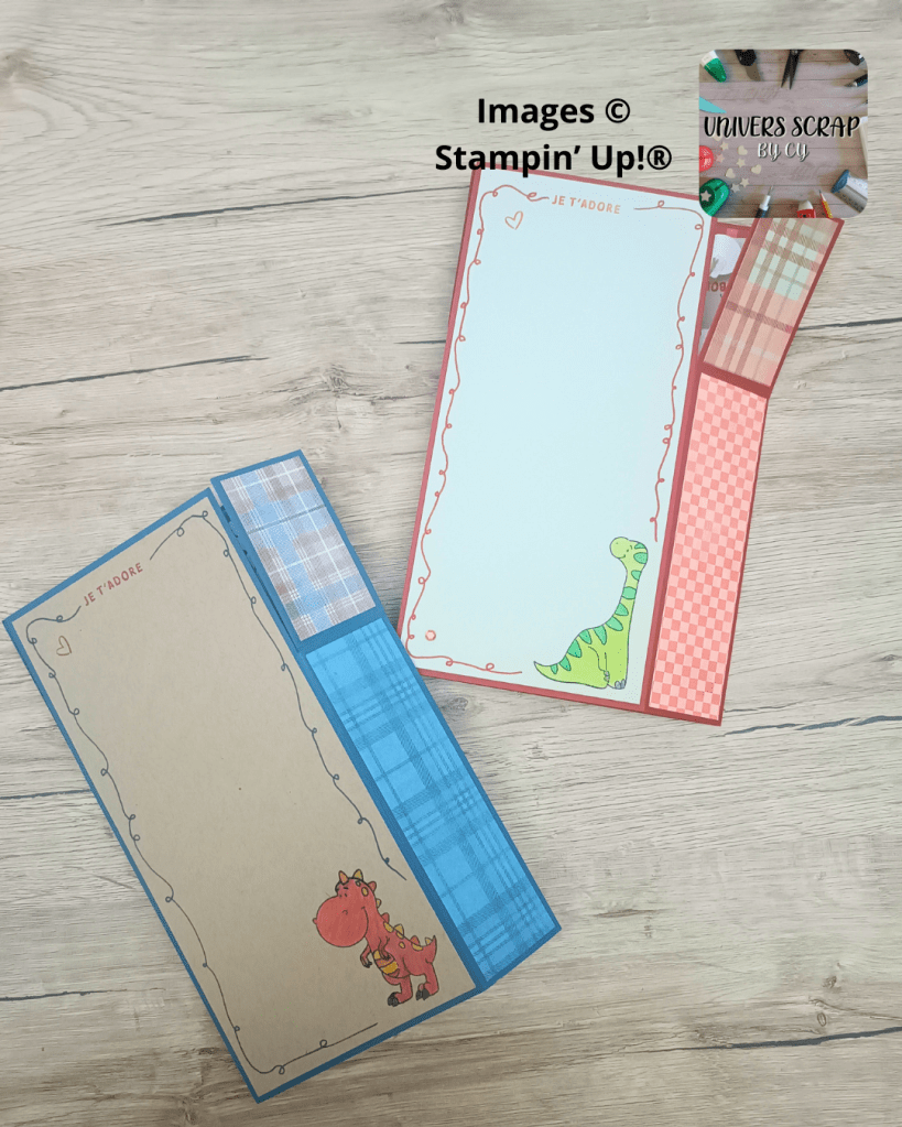 Pour vous procurer ce matériel, je vous invite à vous rendre sur ma boutique en ligne. Vous y retrouverez le lot Adorables dinos, les papiers Tartan indémodable, ainsi que les crayons aquarelle et estompes dont vous aurez besoin. Pensez au code hôtesse du mois en cours, pour recevoir un cadeau de ma part le mois suivant la commande.