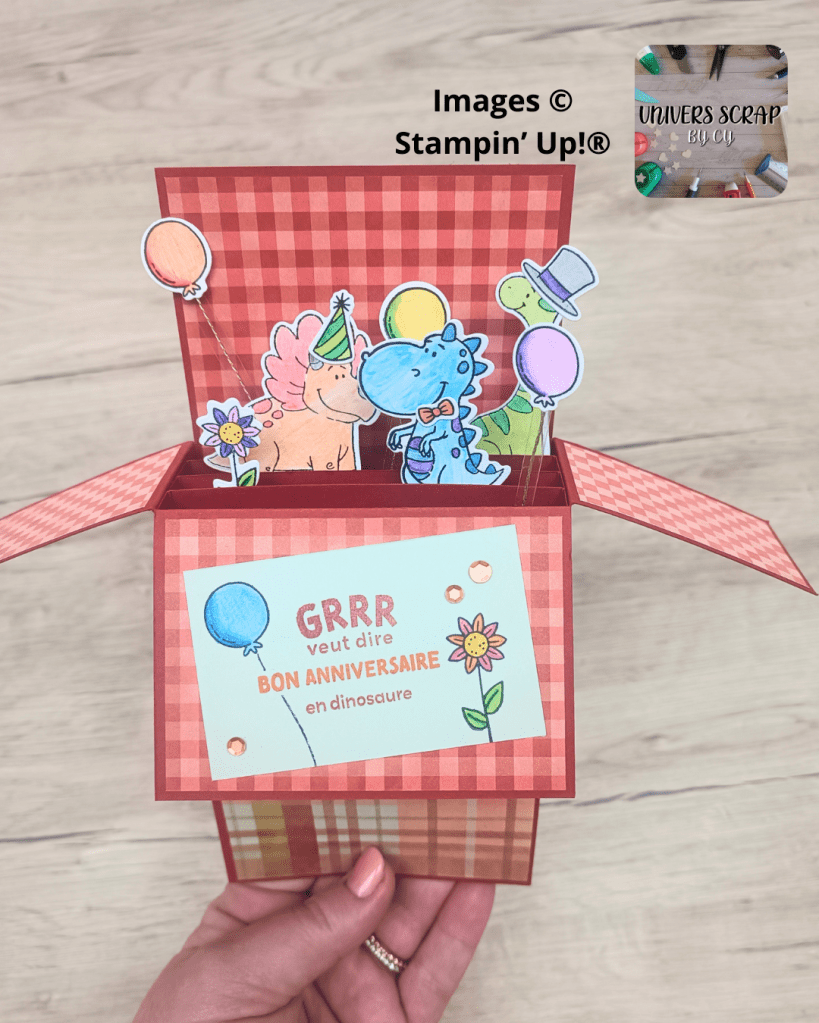 Lundi après-midi, on s’est retrouvé sur l’espace cocooning de Cyrielle pour un live créatif autour de la carte pop-up Dino 🦖. Pour cette version, j’ai choisi le papier uni ocre Roussillon associé à l’incontournable collection Tartan Indémodable. Un duo parfait, vous ne trouvez pas ? 😍