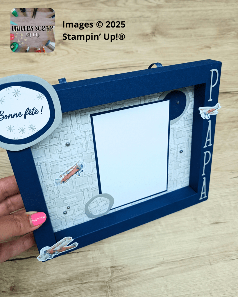 Pour cette version pensée pour les hommes, j’ai choisi une ambiance plus sobre et élégante avec des tons gris et bleu. Ce projet est parfait pour réaliser un cadeau unique à offrir pour la fête des Pères, fait avec amour et entièrement personnalisable.