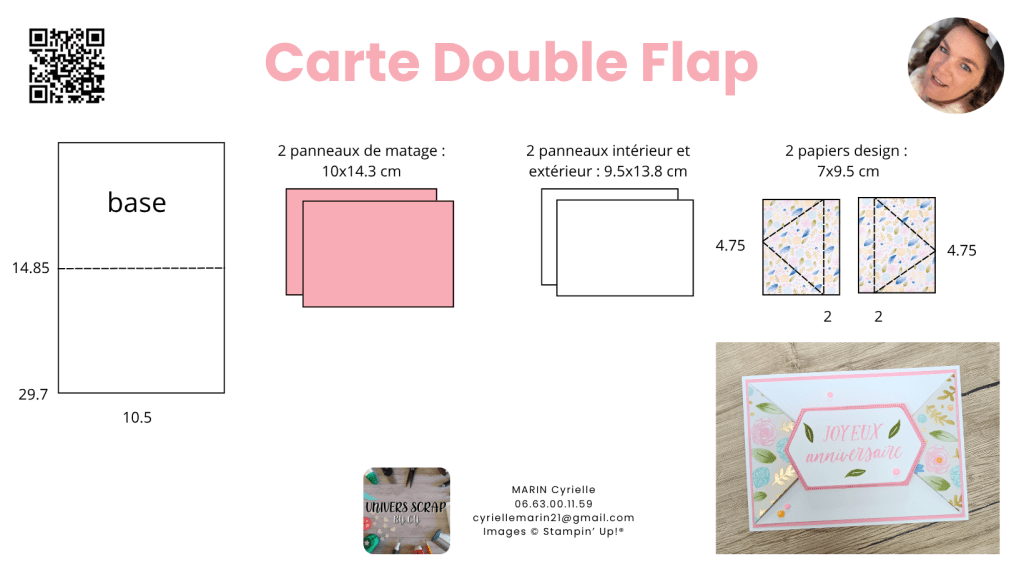 Dans le live de cet après-midi, nous avons créé ensemble une carte double flap, facile à adapter à toutes les occasions. Voici le schéma de coupe et le lien vers le replay pour le refaire chez toi !