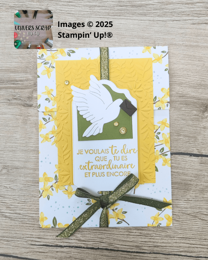 Aujourd’hui, je t’emmène dans un projet audacieux et inspirant réalisé pendant notre live : une carte florale pleine de pep’s, où les poinçons du lot Paix sur Terre viennent sublimer la collection Fleurs ensoleillées ☀️🌿