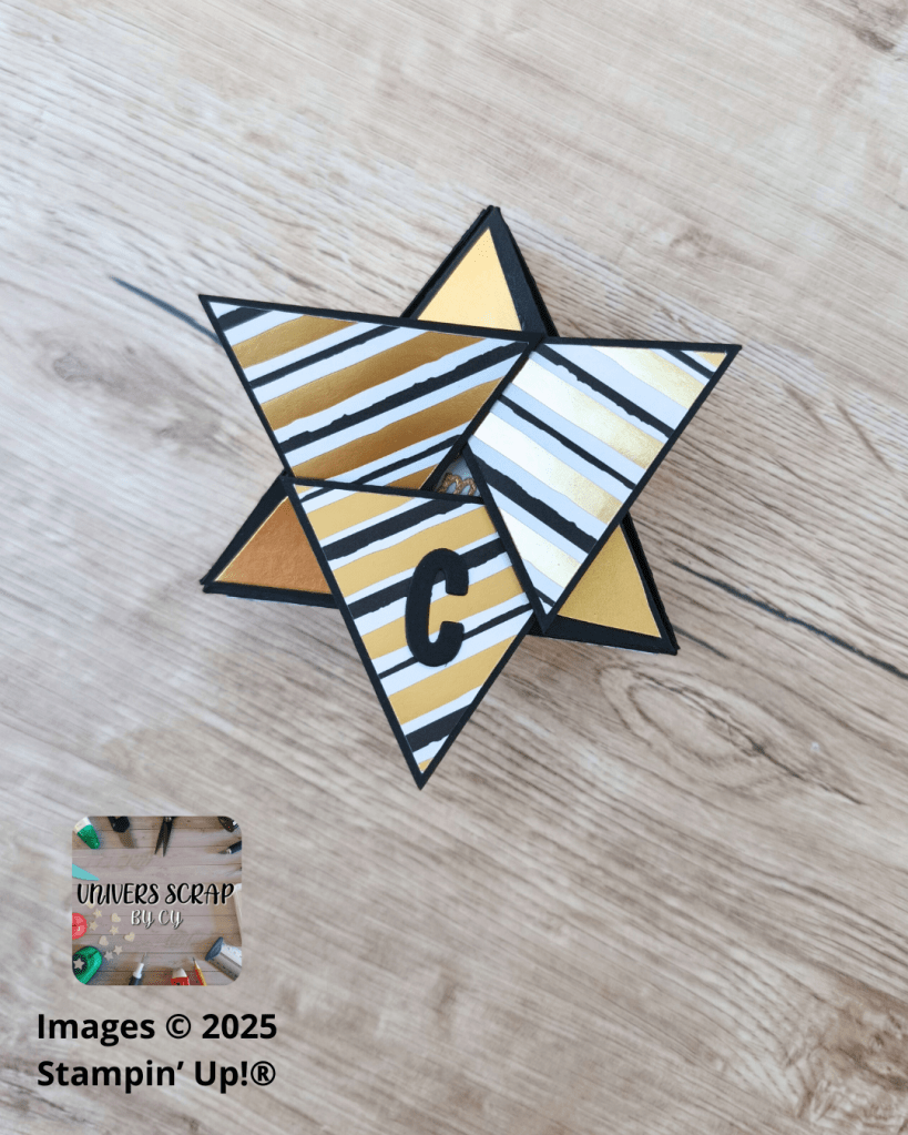 une boîte triangle qui sert à la fois de petit cadeau et de marque-place pour la table de fête 🎁✨