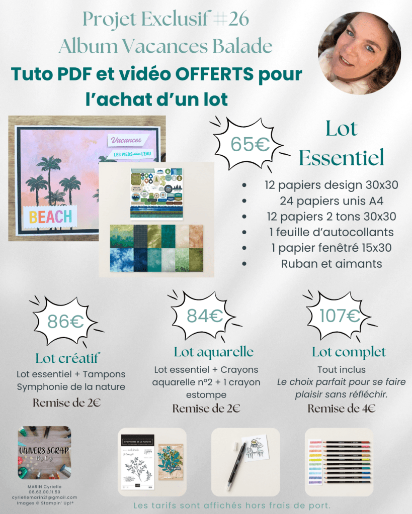 Réalisé avec la collection Promenade Littorale et les papiers “Vacances à la plage”, ce projet met en valeur tes plus beaux souvenirs de vacances en bord de mer.