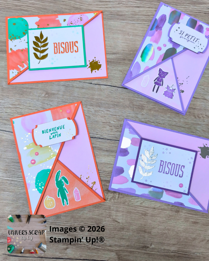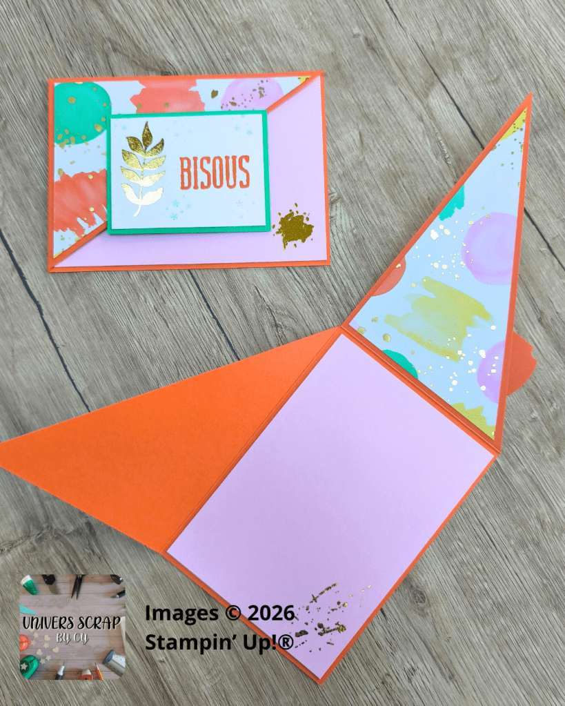 Ce lundi, nous avons exploré une structure élégante et originale : les cartes à rabats triangles. Une technique visuelle bluffante mais accessible à toutes ! Nous avons utilisé la nouvelle collection Touche d’éclat, disponible dès demain dans les Exclusivités en ligne Stampin’ Up!.