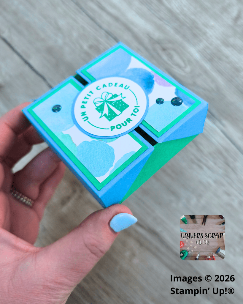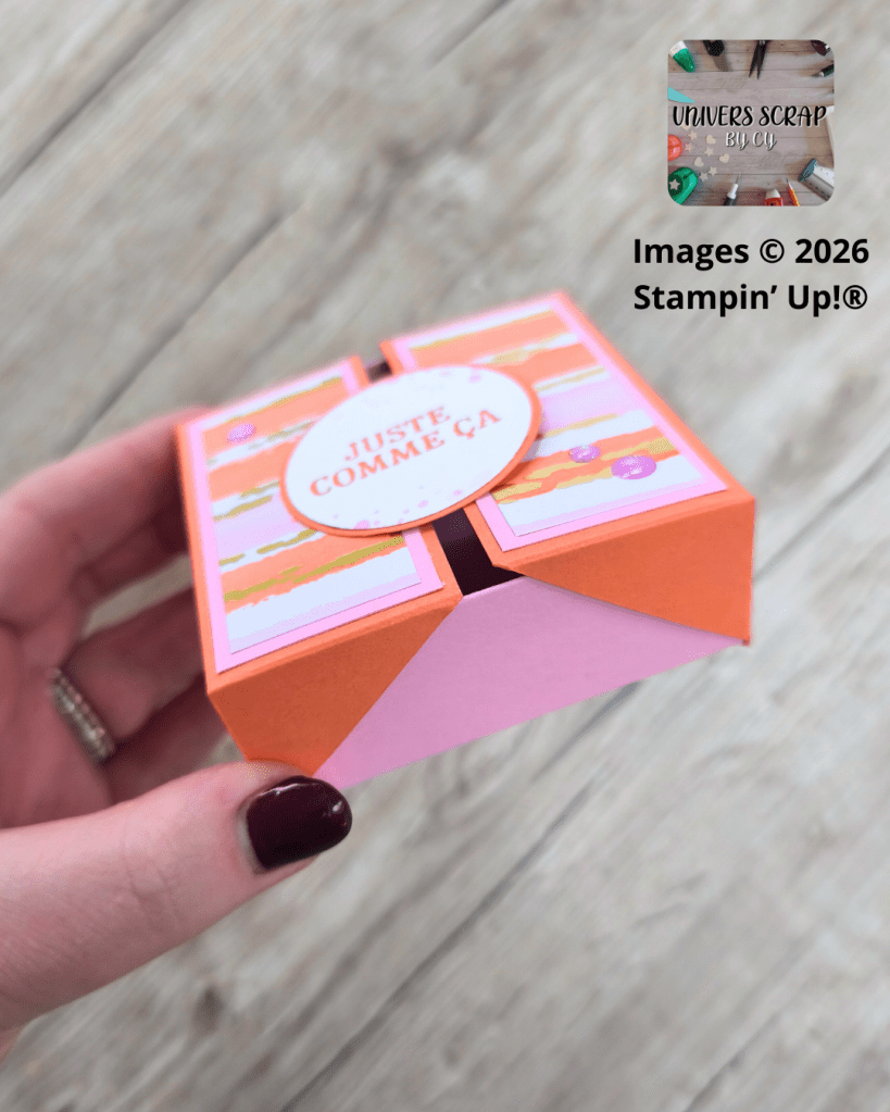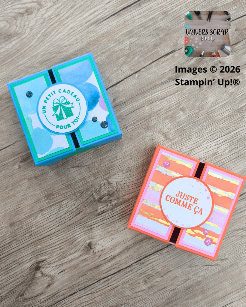 Ce matin, dans le cadre du second live de l’expérience créative#1 , nous avons confectionné une boîte à double ouverture raffinée, idéale pour les petits cadeaux, douceurs ou cartes à glisser.