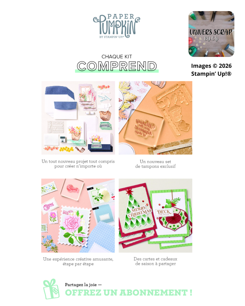 Avec Paper Pumpkin, tu reçois directement chez toi un kit créatif complet pour réaliser de jolis projets, facilement et sans stress.