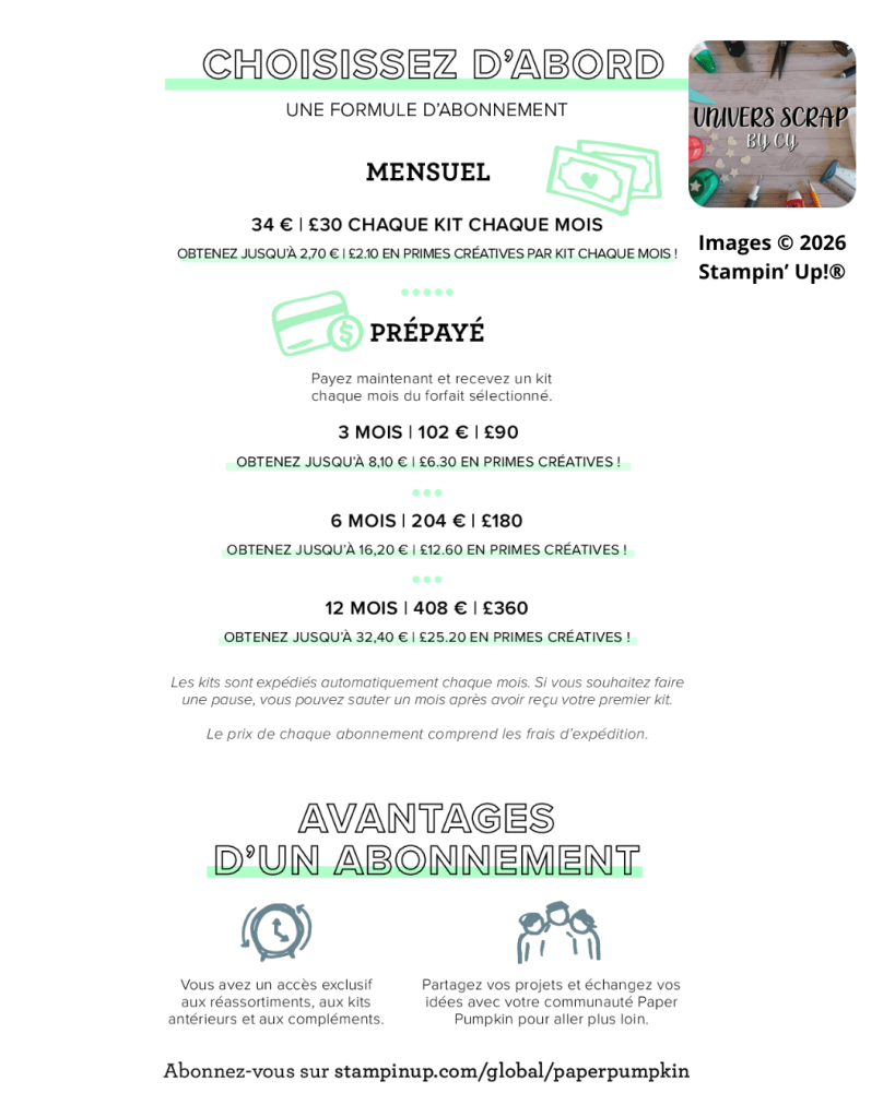Chaque mois, c’est toi qui décides si tu souhaites recevoir le paper pumpkin du mois ou non.